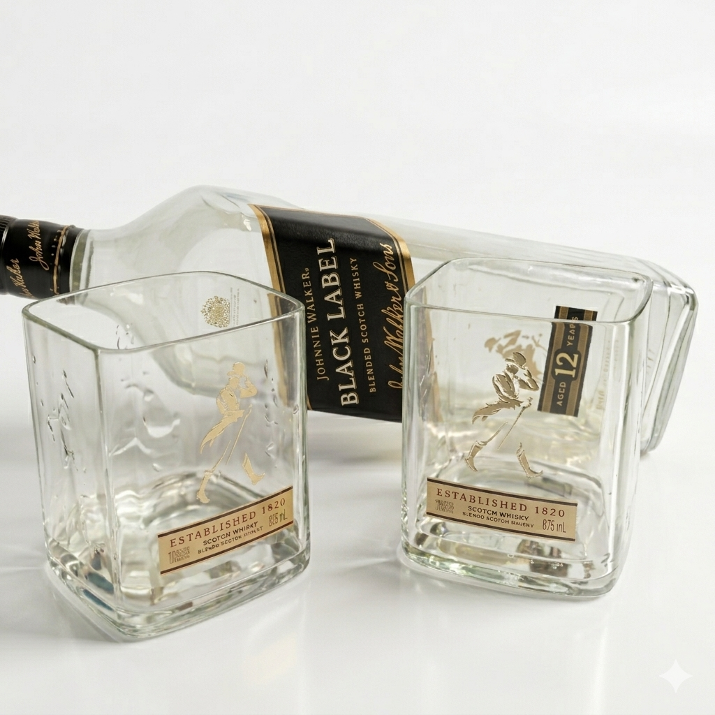 Hecho a partir de las clásicas botellas cuadradas de Johnnie Walker.